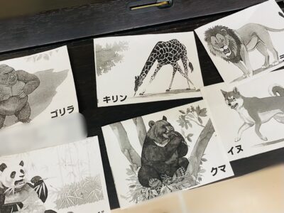 まず先生が子どもたちとおうちの方の背中に動物のカードをつけます。お互いに質問をしあって、自分は何の動物なのか予想して当てられればゴールです!