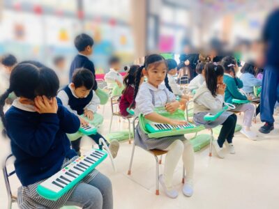年中クラスの子どもたちは3学期の発表会に向けて、メロディオン(鍵盤ハーモニカ)の練習を毎日頑張っています。