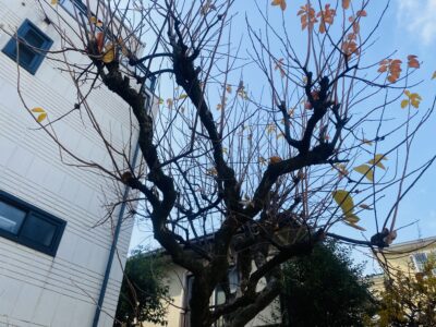 寒い日が続いています。園庭の柿の木の葉もすっかり落ち、「木も寒そうだね」と口にする子どもたち。冬の足音が近づいてきましたね。