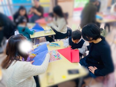 先日、保育参観を行いました。おうちの方に日頃の保育のようすをご覧いただき、親子ゲームや製作を楽しみました。