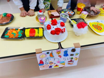 今回のお店屋さんごっこでは売る人と買う人、それぞれの立場を経験しながら、やりとりを楽しむ姿が見られました。こうした経験が、子どもたちの遊びや関わりにつながっていくのではないかと思います。
