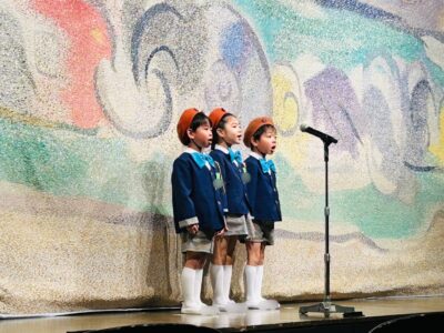 こちらは年長さんの「キラキラ星」と「故郷」。運動会の鼓笛からさらに磨きをかけた演奏です。指揮をよく見て、心をひとつにして凛々しく奏でる姿には、年長としての誇りを感じました。