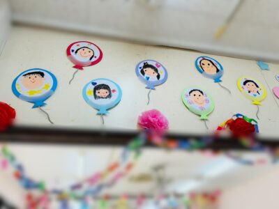 お部屋では、年長さんたちが自分の姿を一生懸命に描いた「自画像」が、誇らしげにみんなを迎えてくれます。
